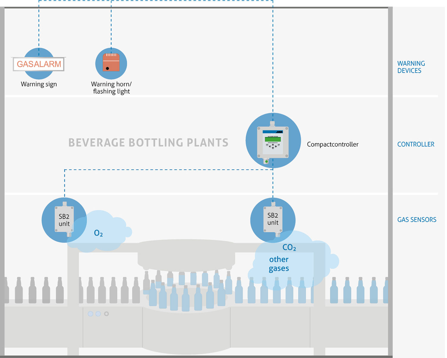 In the beverage industry, the danger from gases is often underestimated. Soft drinks and beers are perceived as refreshing thanks to "carbon dioxide", and carbon dioxide improves the shelf life of still beverages.