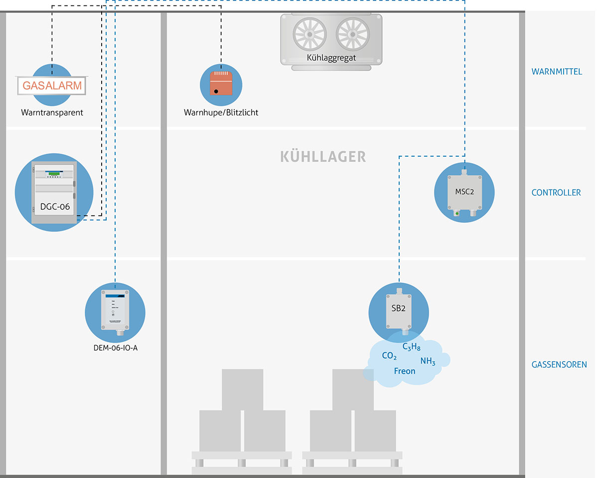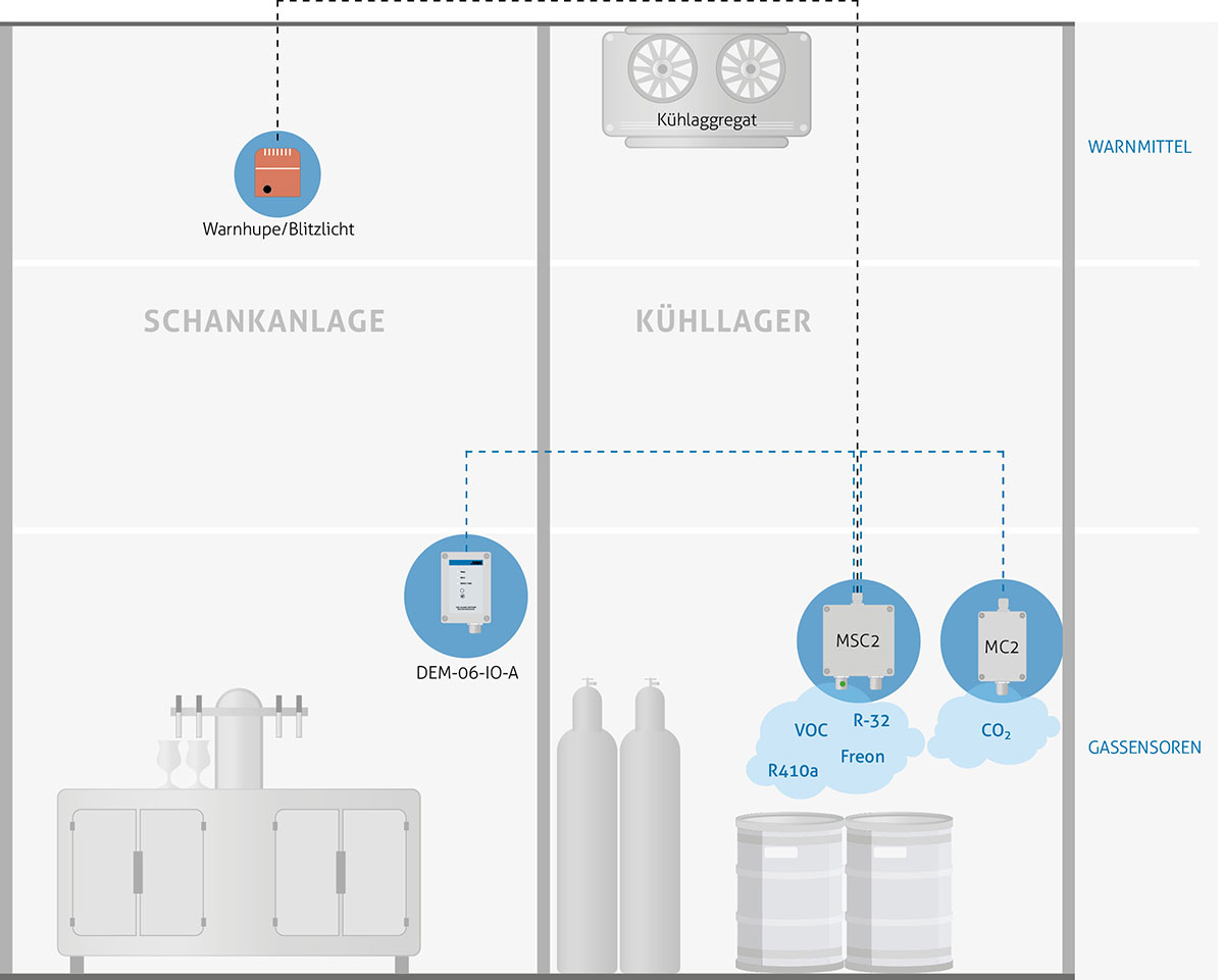 Kälteanlagen müssen ab einer gewissen Größe mit einer Gaswarneinrichtung ausgestattet sein. Die Anforderungen an Gasdetektoren hängen vom Kältemitteltyp und der jeweiligen Anwendung ab.