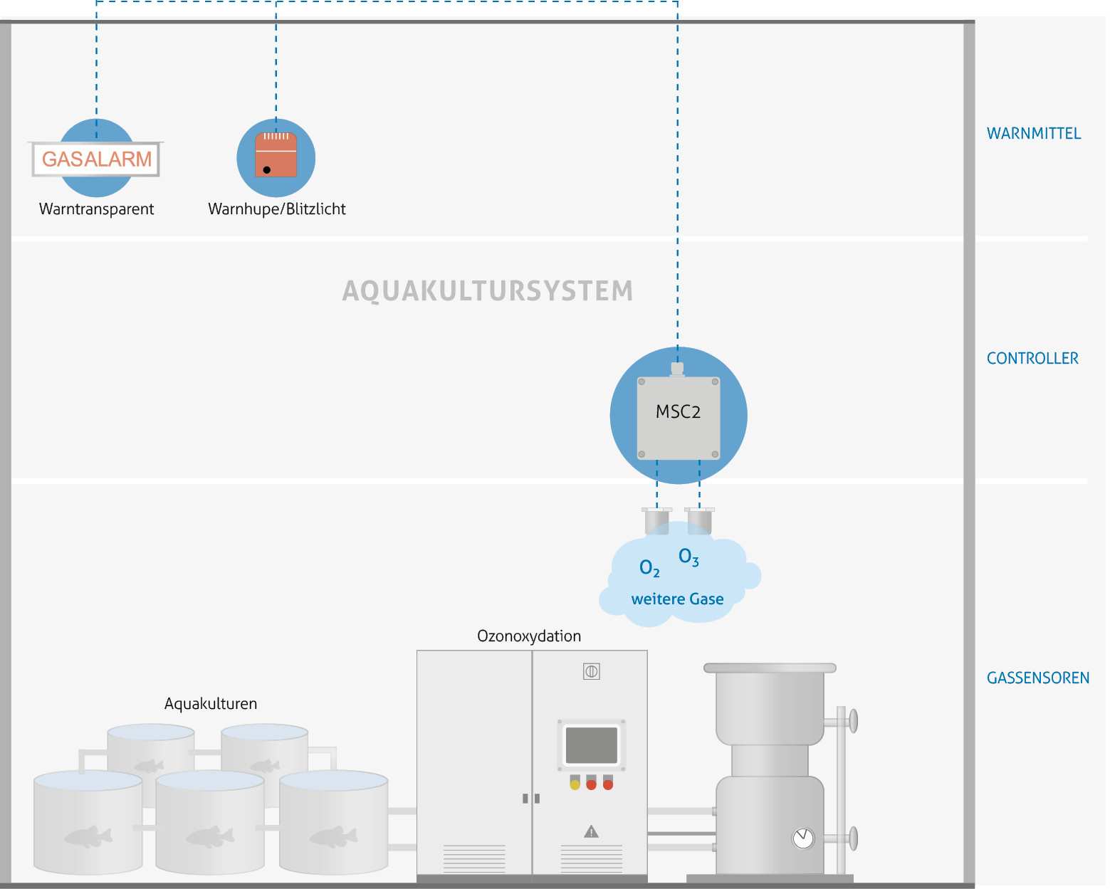 Überwachung von O2-Mangel, Ozongas und weiterer gefährlicher Gase