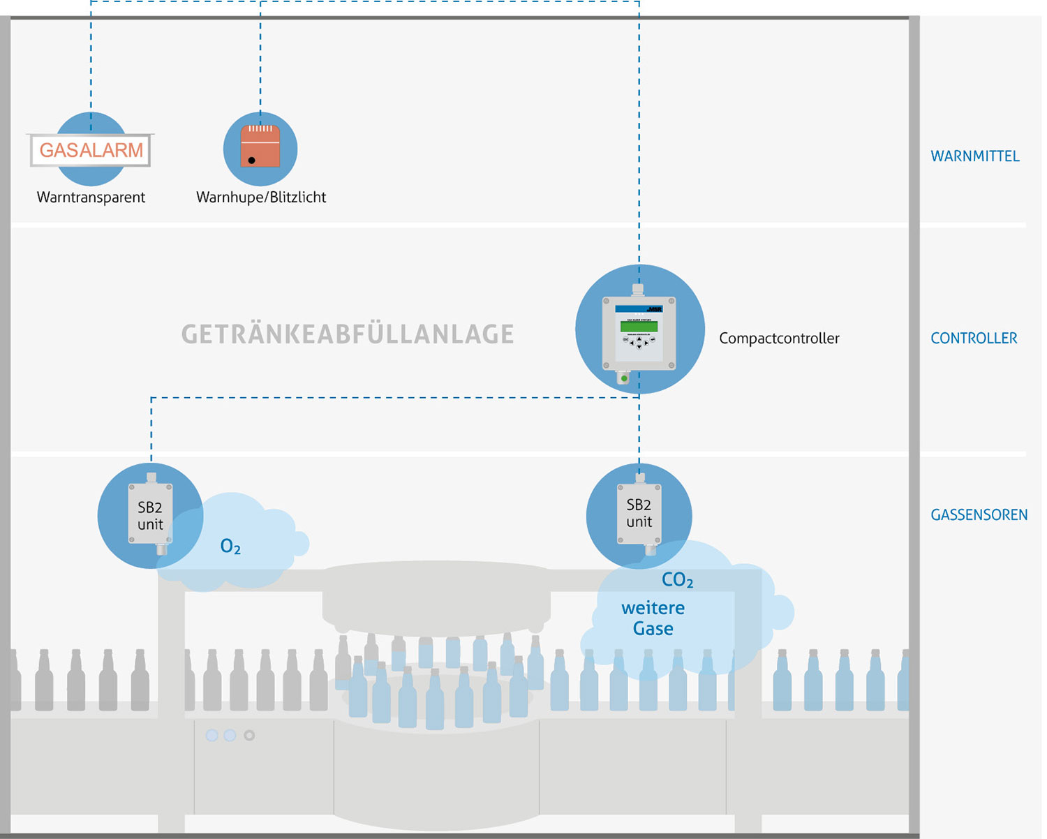 In der Getränkeindustrie wird die Gefahr durch auftretende Gase oft unterschätzt. Softdrinks und Biere werden durch „Kohlensäure“ als erfrischend wahrgenommen und in stillen Getränken verbessert Kohlendioxid die Haltbarkeit.