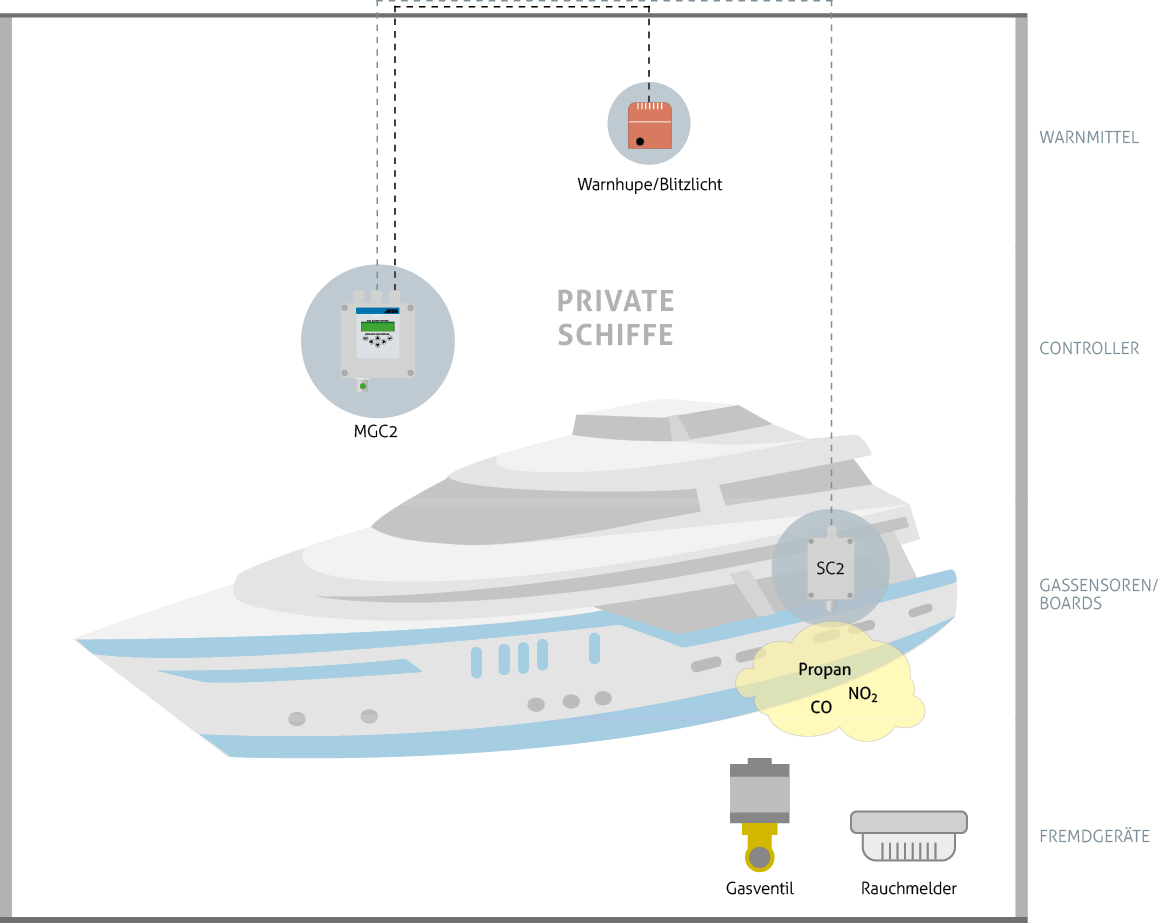 Gasleckagen an Bord können schnell zu einem Brand und Vergiftungen führen. Viele dieser Gase sind oft geruchlos. Der menschliche Geruchssinn kann diese Gefahr nicht mehr erkennen und ist deshalb auf Hilfe angewiesen. Außerdem kann der Austritt von brennbaren Gasen schnell einen Brand oder sogar eine Explosion verursachen.